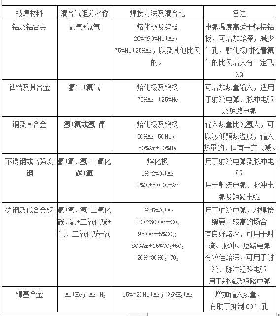 常用焊接混合氣體